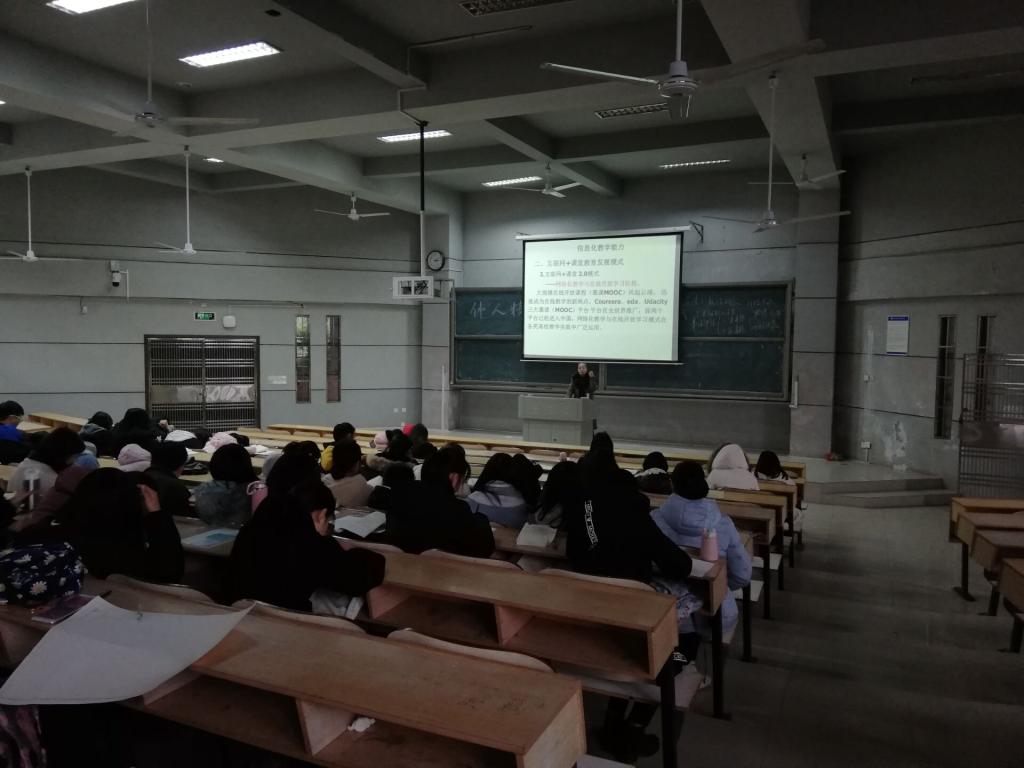 2018年12月25日下午2点,润寰南106教室,何昭青教授为金年会官网18级787教技班作了一个精彩讲座。 何教授从介绍农业时代到AI时代不同时期段教育技术应用,深入分析互联网+课堂教师模式,以及教育部关于教育信息化建设工作若干文件精神,延伸到今后的工作中,让我们明晰教育技术在教育信息化的地位和作用,明晰教育信息化、教师信息化教学能力的发展及重要性。告诫未来的乡村小学教师,应该立志为乡村教育信息化做出重大贡献。 讲座过程中,何教授亲切幽默的口吻激发了同学们的积极性和求知欲,相信本次讲座对同学们来说是一次极大的帮助,化解同学们心中的疑惑与不解。
