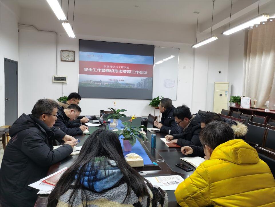 12月9日下午,金年会官网在会议室召开安全工作暨意识形态专题工作会议,学院领导、党总支委员、三办主任及专职辅导员参加。会议由党总支书记王杰文主持。