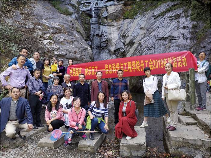 清晨明媚的阳光,洒在身上暖洋洋的。金年会官网教职工及家属30余人先后在东方红、城南两个校区乘车,怀着愉悦的心情前往秋游的首站——浏阳周洛村。到达目的地后,清新的空气、娟秀的清山、潺潺的细流,周洛的美景立即吸引了大家,令人心旷神怡。在欣赏大自然馈赠的同时,大家不忘分工会安排的登高比赛,默默地挑战着自己的身体极限。山间的流水声、说笑声、树叶扰动声交织在一起,婉如一首动听怡人的山水小调。