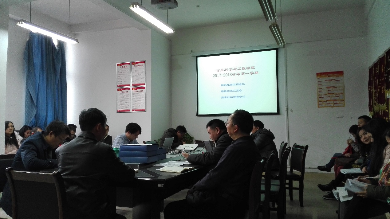 2018年1月2日下午,金年会官网在院会议室召开“信息科学与工程学院 2017-2018学年第一学期期末教学工作会议、课程改革汇报会、期末教学检查会议”。院长李勇帆、书记王杰文、副院长田祖伟、王建军出席会议,全院教职工参加了会议。本次会议由院长李勇帆主持。