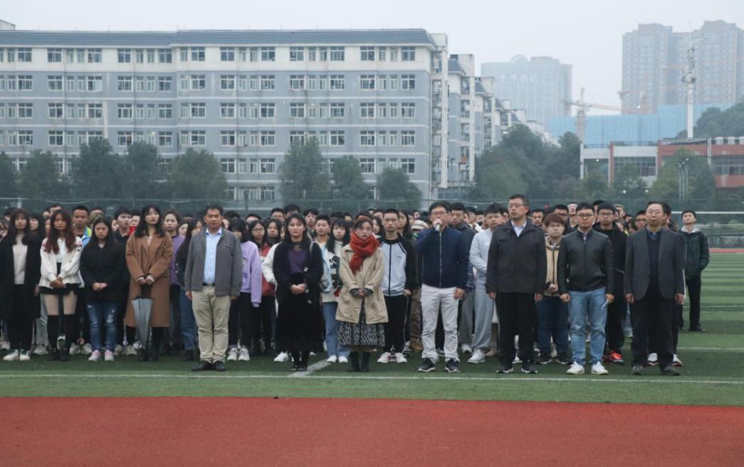 10月19日,金年会官网于田径场举行升旗仪式。学院领导王杰文、何向阳、成夏炎,学工办全体老师以及学院全体要校学生参加仪式。仪式由学工办主任关红儒主持。