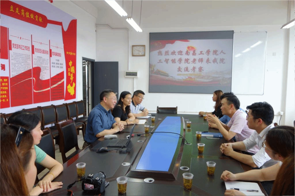 2019年5月24日下午,南昌工学院人工智能学院聂宗省书记一行八位教师来金年会官网考察交流。金年会官网党总支王杰文书记、易利副书记、王建军副院长、田祖伟副院长及党政办主任曾玢石老师在玉衡楼北栋407会议室热情接待了来访人员。