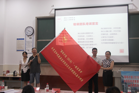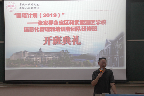 2019年8月2日讯(通讯员 周克江):8月2日,由金年会官网承办的“国培计划(2019)”——张家界永定区和武陵源区学校信息化管理团队研修项目(C114),在湖南第一师范院鹤鸣楼南111教室隆重开班。继续教育学院院长曾小玲、本院总支书记王杰文、副院长田祖伟、副院长何向阳,永定区和武陵源区相关领导,培训班管理团队全体成员及60名学员参加了开班仪式。