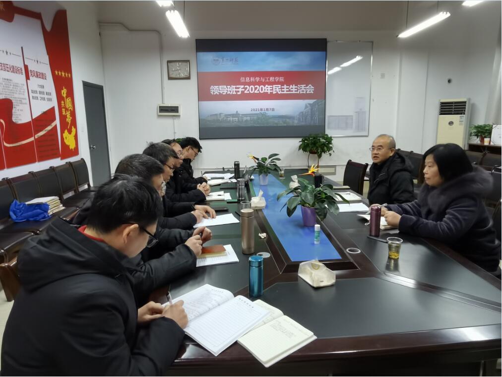 1月7日下午,学院领导班子2020年度民主生活会在玉衡楼北栋407室召开。学校党委书记彭小奇到会指导并发表讲话,学校党政办主任何文出席。会议由党总支书记王杰文主持。
