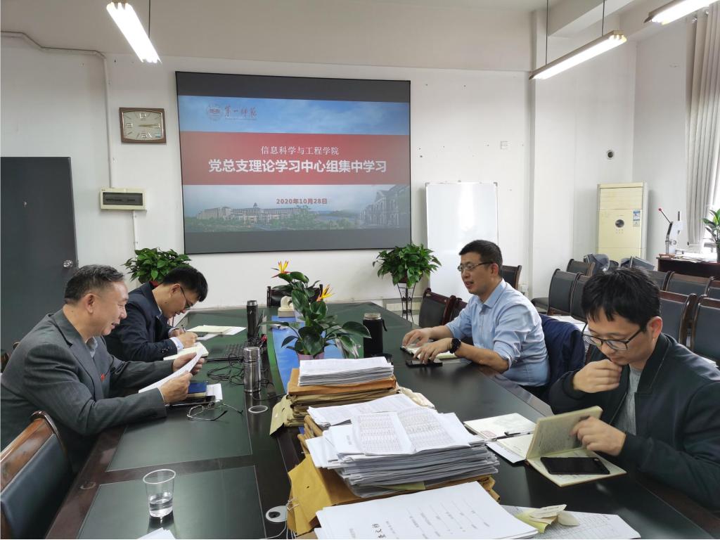 10月28日15时,学院党总支理论学习中心组在学院会议室举行了集中学习,在家总支委员参加学习,会议由党总支书记王杰文主持。