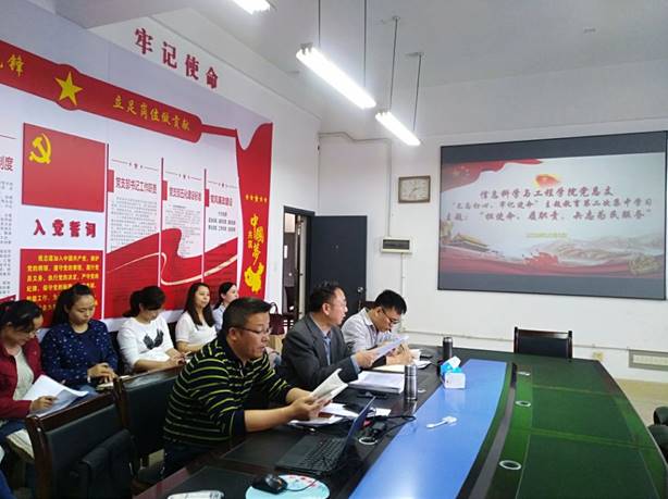 10月8日15时,信息科学与工程学院党总支部“不忘初心、牢记使命”主题教育第二次集中学习活动在玉衡楼北407举行。副院长田祖伟同志围绕主题“担使命、履职责,矢志为民服务”作了主题发言,从大的方面来讲,“担使命,履职责”就是为中国人民谋幸福,为中华民族谋复兴,这是中国共产党作为一个执政党自成立以来就肩负的使命,是我们追求的目标,也是我们第一个党员,每一个党员领导干部所要担负的使命。从小的方面来说,“担使命、履职责、矢志为民服务”,最终都要落实到具体的行动中、落实到具体的实践中、落实到日常每一天的工作生活中,这就要求我们必须将学习深入到我们的实际工作中去,立足岗位,勇于担当,履好职责,大公无私,无私奉献,为学生服好务,为学校的发展贡献自己的力量。