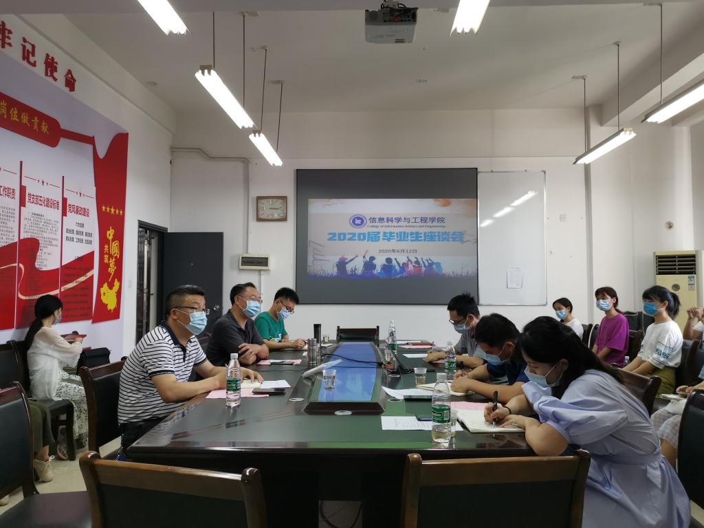6月12日下午,金年会官网2020届毕业生座谈会在玉衡楼北407召开,学院领导王杰文、田祖伟、成夏炎及学工办全体老师出席,近20名毕业生代表参加。会议由学工办主任关红儒主持。