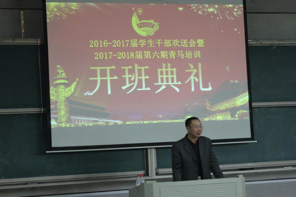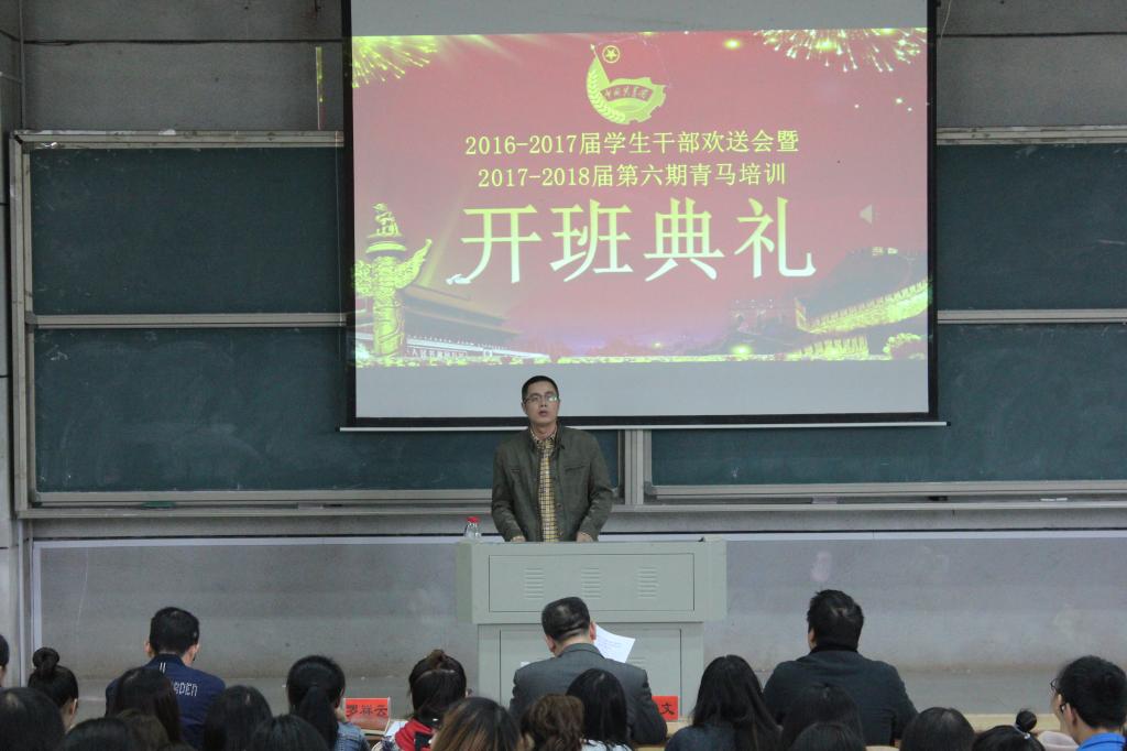 党总支副书记罗祥云介绍了青马的课程设置。他充分肯定了上届学生干部为学院学生管理工作作出的努力和贡献,同时希望现任学生干部及助干勇于承担使命,各司其职,在接下来的工作中改革创新,为学院的建设发展奉献力量。希望所有学员珍惜培训机会,在学习过程中遵守纪律,注重思想素质的提升。