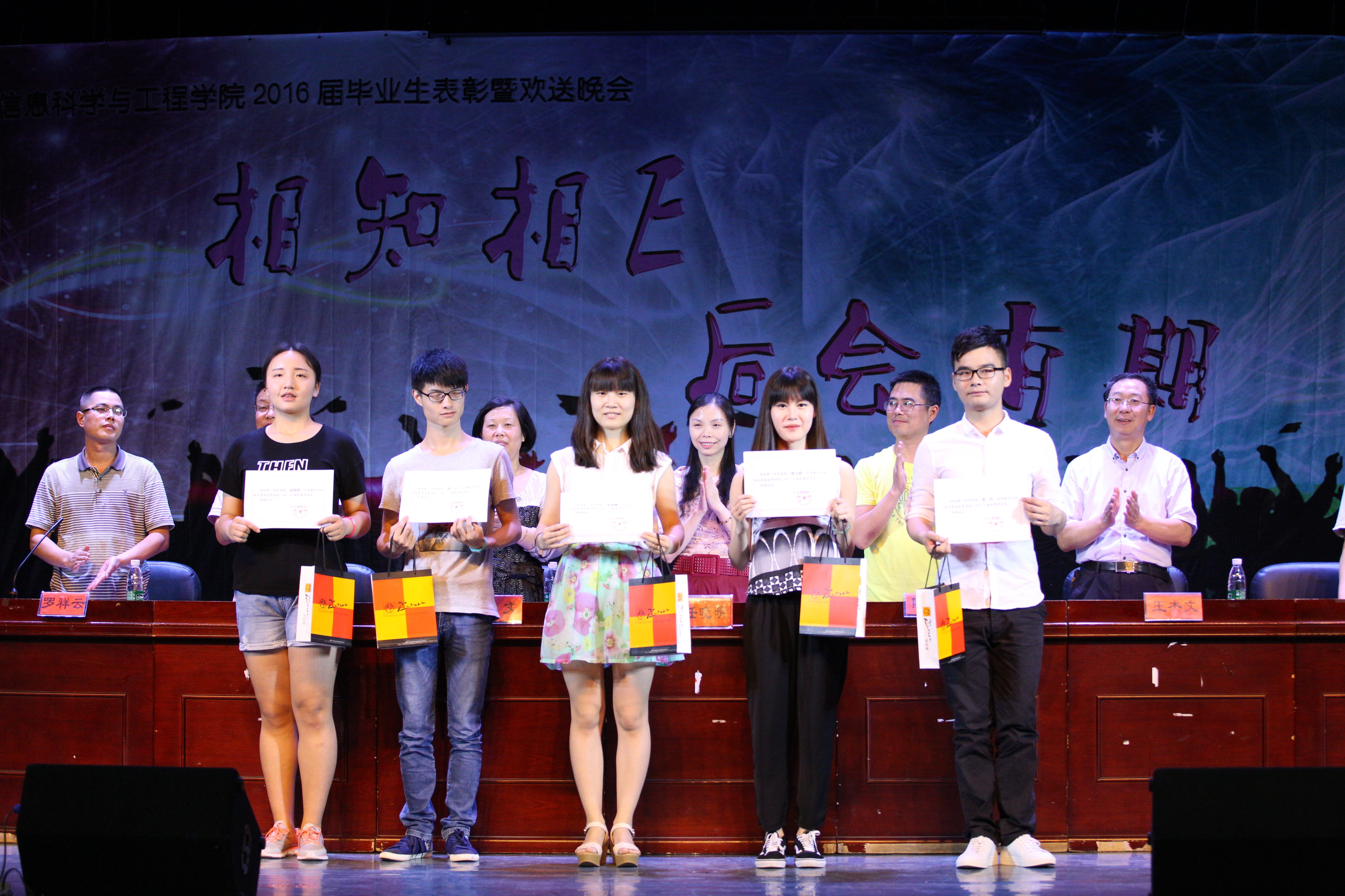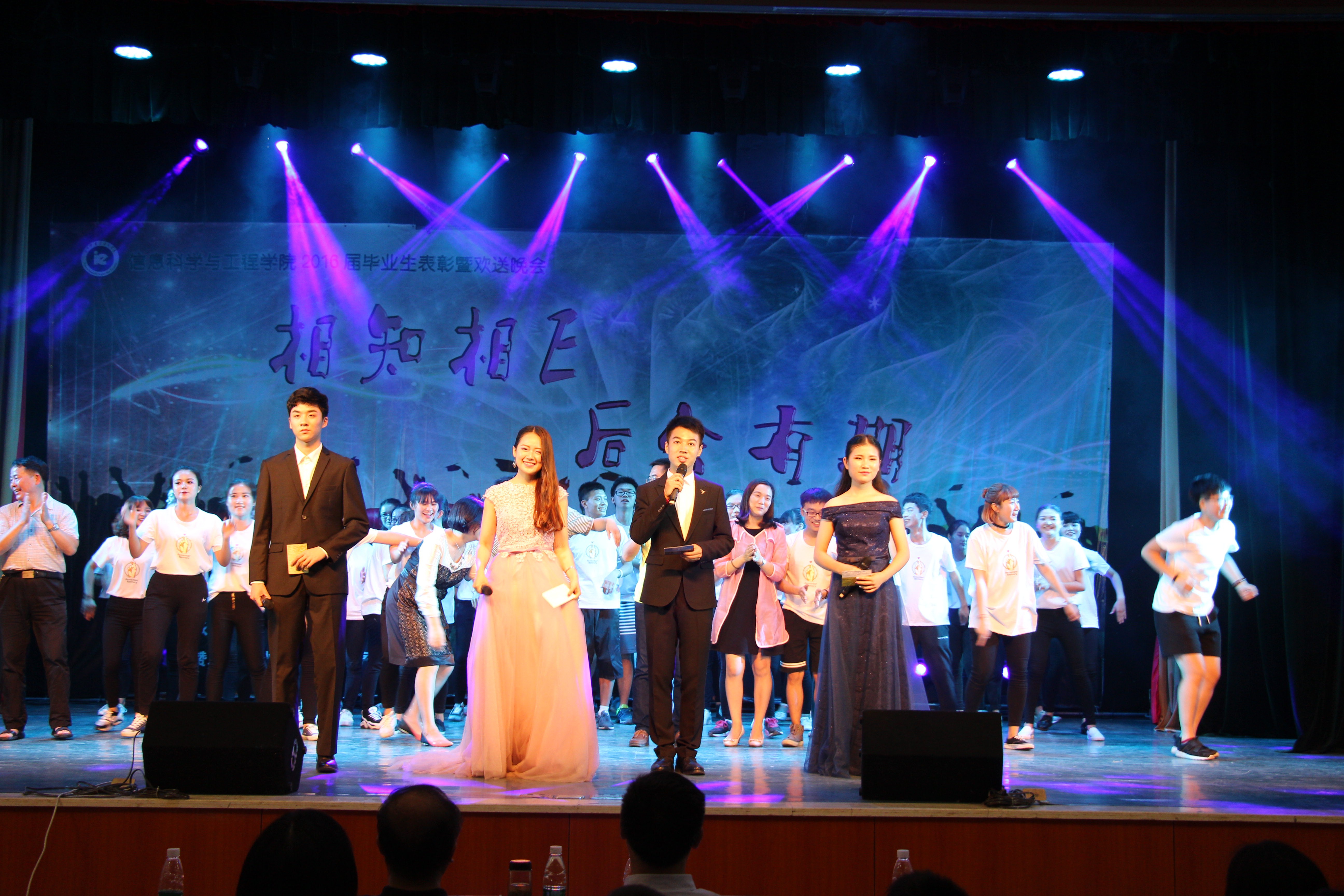 6月16日晚,信息科学与工程学院2016届毕业生表彰暨“相知相E·后会有期”欢送晚会在科技楼实验剧场隆重举行。校党委书记彭小奇,党委委员、团委书记任晓晴,宣传部部长陈志武,学生工作处处长何文等领导应邀出席,信工学院领导老师及全体毕业生、肄业生代表参加表彰会并共同观看了演出。