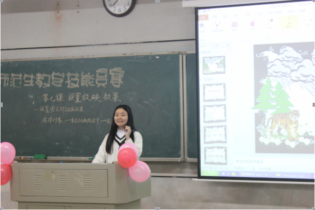 本次大赛分为教学设计、课件制作、教育知识问答和片段教学四个环节。通过初赛选拔后进入决赛的九位选手,在前期150分钟的无网环境下,有条不紊地进行教学设计和课件制作,而后在讲台上灵活的将信息技术教学内容和音乐、动画、故事等素材完美结合,并对教学过程中遇到的突发问题进行解答,沉着应战,颇有教师风范。一号选手伏贝在比赛预备阶段,主动用可爱俏皮的英文歌曲与观众互动,活跃了现场氛围,其机智的应变能力获得现场评委、观众的一致好评。而后的片段教学展示环节选手们也表现不俗。五号选手曾淇将趣味故事“兔子历险记”完美融入信息技术知识教学课程中,有趣的教学方式让现场充满欢乐。比赛中,选手们沉着机敏、灵活丰富的运用所学专业知识充分展示了自己的才华,赢得阵阵掌声,折服了现场的观众。
