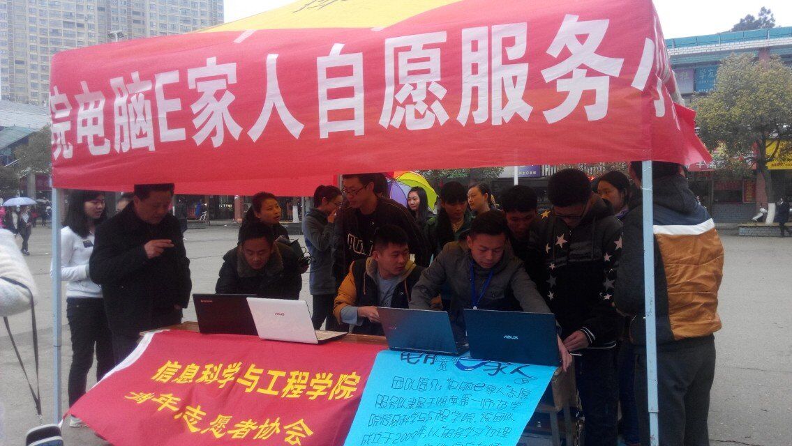 继3月15日开展志愿者参观雷锋纪念馆活动后,金年会官网电脑E家人志愿服务小组配合青志协于3月17——18日在校园文化广场开展了为期两天的“电脑e家人、窗口学雷峰、服务暖人心”的志愿服务活动。活动面向全体学生提供计算机操作系统故障诊断与处理、计算机硬件配置、计算机常用软件装载、网络设置、系统维护等服务项目。活动期间共处理72台计算机问题,给同学们带来实实在在的效益。金年会官网党总支张如健副书记也亲临活动现场,给志愿者们提供专业的指导,并对他们学雷锋的精神给予了充分肯定,李豪杰老师还参与了具体的计算机维护服务。