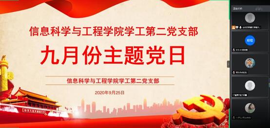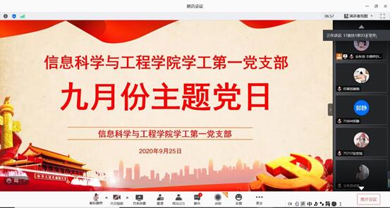 2020年9月25日,金年会官网学工第一党支部、第二党支部分别开展了九月份线上主题党日活动。一同参加主题党日活动的有学院党总支副书记成夏炎、学工办全体辅导员以及两个支部的学生党员。王芊芊、全智分别主持各自所在支部的活动。