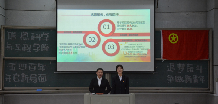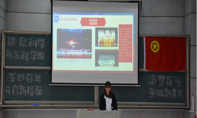 大会在激昂的中国共产主义青年团团歌声中正式拉开帷幕。学院团总支书记唐瑞鸿老师首先作《共青团信息科学与工程学院总支部委员会2018-2019学年工作报告》。唐瑞鸿紧紧围绕学校中心工作,从基层团组织建设、校内外实践活动、学风建设工程、基层团组织建设方面出发做了全面总结,并在报告中指出:一年来,金年会官网广大青年团员在学院党总支和上级团组织的正确领导下,以青年理想信念教育为先导,以提高青年学生的综合素质为主体,全面履行共青团的四项基本职能,服务青年学生成长成才,在加强团的自身建设,拓展团的特色工作,增进团的创新活力等方面取得了可喜的成绩。