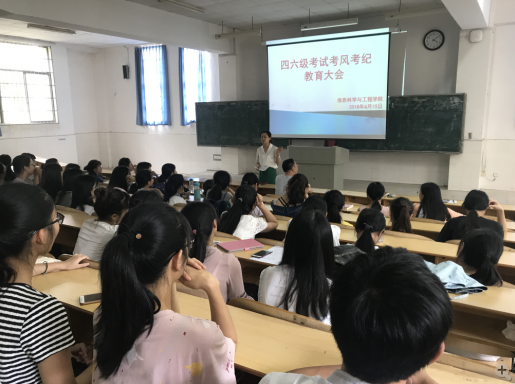 为严肃考风考纪,严明考试纪律,2018年6月15日下午16:00,信息科学与工程学院四六级考风考纪教育大会在实验楼C栋101教室隆重举行。学院党总支书记王杰文、党总支副书记易利、学工办老师关红儒、唐瑞鸿、院学生干部、各班班干部代表参加此次会议。会议由关红儒老师主持。