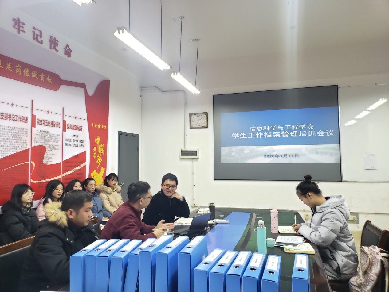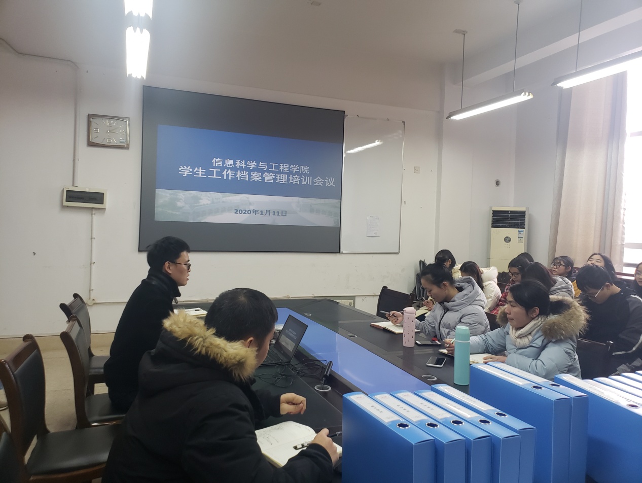 (通讯员 关红儒)1月11日15时,金年会官网在学院会议室召开学生工作档案管理培训会。学院党总支副书记成夏炎授课,学工办辅导员老师以及主要学生干部、干事参加培训,会议由叶晶主持。
