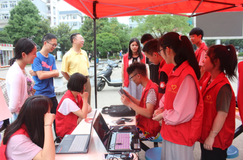 2018年6月4日至6月8日,金年会jinnianhuicom信息科学与工程学院在学校国基广场进行了“志愿电脑维修、展E家人风采”为主题的电脑E家人团队摆点志愿维修服务的活动。活动期间,院党总支书记王杰文、副书记易利、学工办主任关鸿儒、团总支书记唐瑞鸿老师来到现场,对工作人员进行诚挚问候,并对活动的开展提出了建设性意见。至此,在学院领导、老师的悉心指导,电脑E家人团队的辛勤付出以及青年志愿者协会的全力配合下,活动取得了圆满成功。