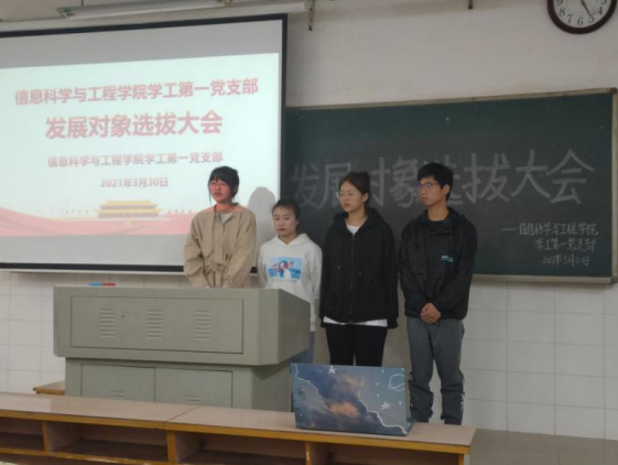 2021年3月30日,金年会官网学工第一、第二党支部在玉衡北209、210召开发展对象选拔大会。学工第一党支部书记关红儒、学工第二党支部书记李荣敬,全体学生党员和69名入党积极分子参与此次大会。大会分别由戴玉洁、刘妍主持。