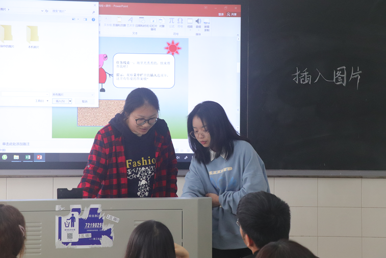 各选手先在机房进行两个半小时的教学设计和多媒体课件制作,再有序前往比赛场地进行教育问答演讲和片段教学。教育问答环节逻辑清晰,片段教学环环相扣,每位选手都展示出了自己的最佳水平,赛场氛围十分浓厚。