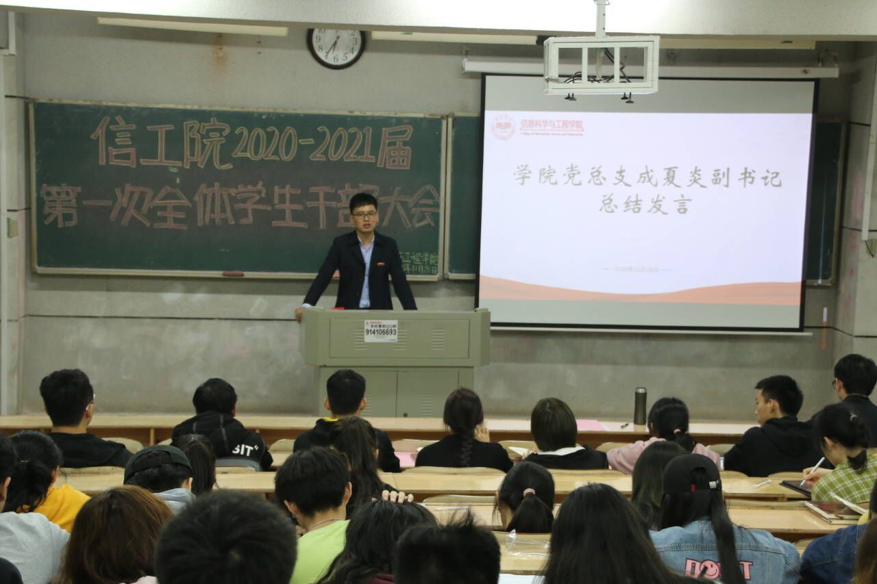 10月28日晚,金年会官网在润寰南101召开2020-2021届学生干部第一次全体会议,学院党总支副书记成夏炎、学工办主任关红儒出席,会议由团总支学生副书记张玉鑫主持。