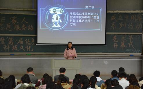 在激情昂扬的国歌奏唱中,开幕式正式拉开序幕。会上,易利老师回顾了E家人志愿服务站十周年历程,宣读了学院2019年“信息科技文化艺术节”工程整体工作方案,引导学生积极参赛、备赛、竞赛,并鼓励广大同学勇于创新,强化科技理念,共同努力全面推动优良院风建设。