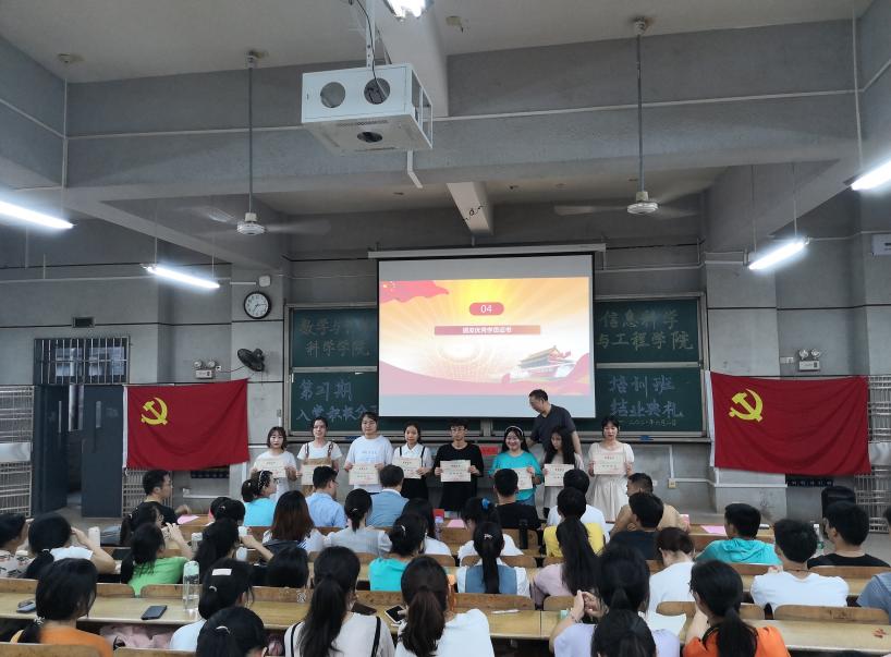 6月2日晚7点,金年会官网分党校与数学与计算科学学院分党校联合开办的第27期入党积极分子培训班在怀中南109教室举行结业典礼。两院领导、分党校校务委员、学生党支部书记应邀出席,本期159名学员及相关工作人员参加。典礼由金年会官网党总支书记、分党校校长王杰文主持。