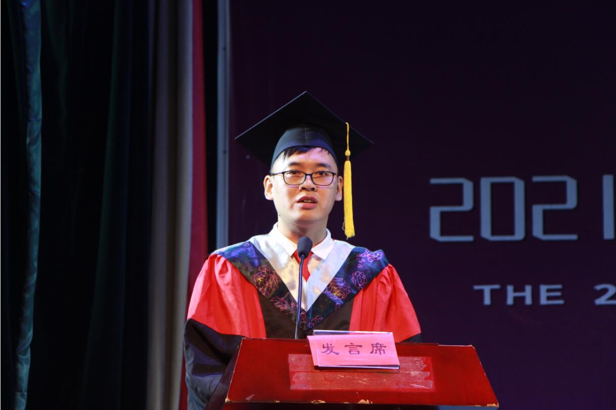 教师代表汤希玮以“以梦为马,不负韶华”勉励毕业生要永怀梦想,活出青春风采。优秀毕业生代表詹礼新“感恩母校,砥砺前行”的感想,优秀校友代表唐雷“永远年轻,永怀理想”的激励,相继表达了对毕业生们最诚挚的祝福。