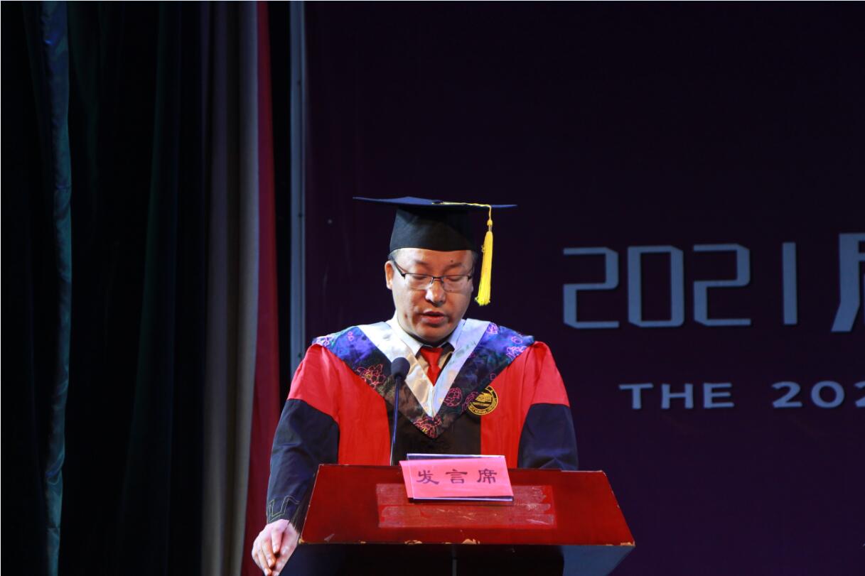 6月21日上午,金年会官网2021届毕业生毕业典礼暨学位授予仪式在实验剧场隆重举行。学院领导王杰文、田祖伟、何向阳、成夏炎及教授代表王建军、李新国、汤希玮、赵晋琴出席,学院全体辅导员及金年会官网2021届全体在校毕业生参加此次典礼。典礼由党总支副书记成夏炎主持。