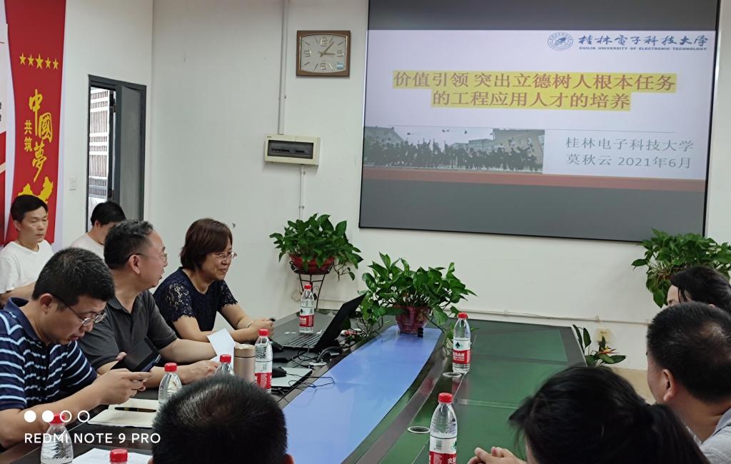 6月25日下午,桂林电子科技大学教授、机电工程学院副院长莫秋云应邀到金年会官网,做了题为“价值引领 突出立德树人教育根本任务的工程应用人才的培养”的学术讲座。讲座由学院党总支书记王杰文主持。