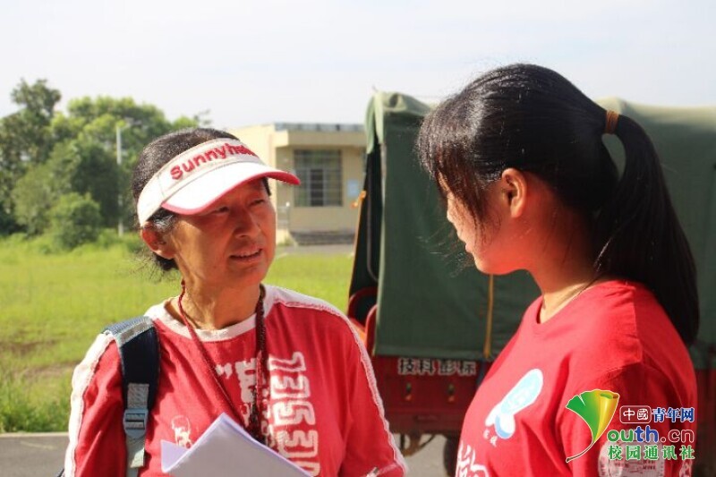 图为队员与学生家长沟通交流。中国青年网通讯员 欧阳健摄