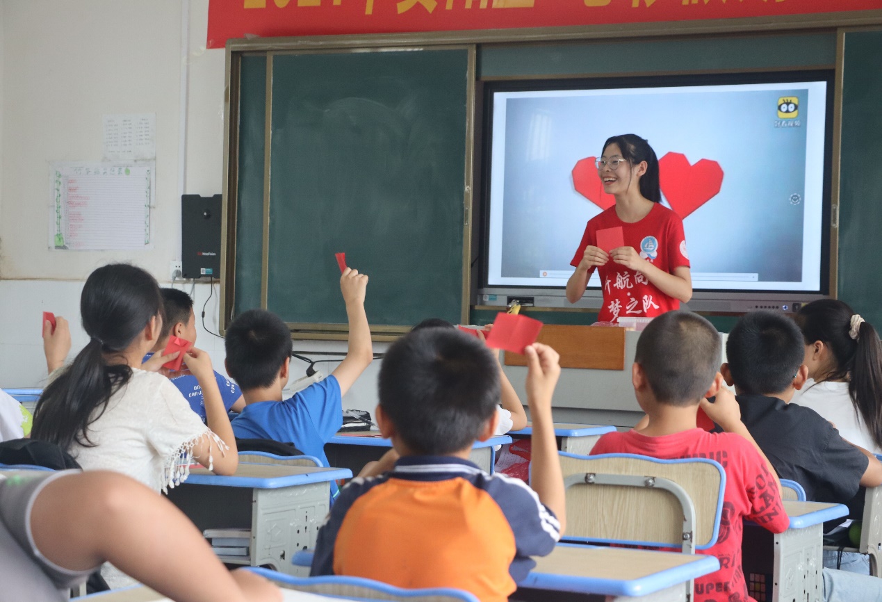 (通讯员李荣敬 谢卉倩 陈倩汶)2021年7月13日,金年会jinnianhuicom信息科学与工程学院新航向·梦之队走进益阳市资阳区迎风桥镇长塘仑小学,与当地政府联合举办“七彩假期”公益暑托班活动,为了引导小朋友们树立“感党恩,跟党走”的理想信念,培养小朋友们爱党爱国情怀。在第一天兴趣班课程中开展了“红心向党”趣味手工课,在课堂上,小朋友们互帮互助兴趣高涨,红色卡纸在孩子的手里变成一个个红心,表达了对党的敬佩之情。