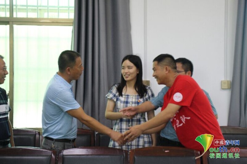 图为此次新航向·梦之队教育帮扶关爱团的带队老师与当地镇政府领导干部谈论乡村教育振兴。中国青年网通讯员 欧阳健 摄