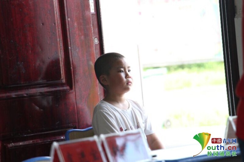 图为报到的小朋友坐在椅子上凝神地看着忙碌的队员们。中国青年网通讯员 欧阳健 摄