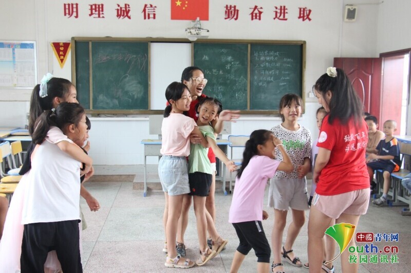 中国青年网益阳7月18日电(通讯员 陈倩汶 欧阳健)7月18日上午,湖南第一师范信息科学与工程学院新航向.梦之队志愿者老师带领长塘仑小学的孩子们开展室内趣味运动会,欢笑声、呐喊声在教室回响。插旗接力、喊数抱团、三人四足、拔河这一个个趣味十足的项目让孩子们感受到了运动会的快乐。一场运动会,让孩子们和志愿者老师的距离亲密无间,感受室内运动会带来的快乐。