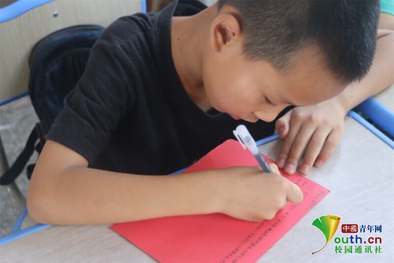 图为小朋友在上完红色趣味故事课后,用稚嫩的文字写下对在长征过程中牺牲的烈士想说的话。中国青年网通讯员 段新利 摄