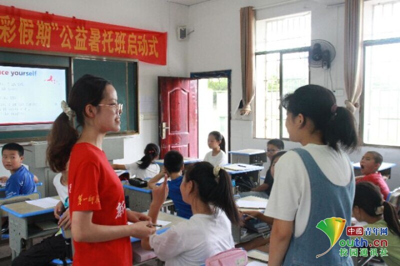 中国青年网益阳7月14日电(通讯员 金欢 马唯一)为进一步提升当地乡村留守儿童学习英语的兴趣,帮助学生奠定英语学习的基础 ,7月13日,金年会jinnianhuicom信息科学与工程学院新航向·梦之队在益阳市迎风桥镇长塘仑小学为孩子们上了第一堂趣味英语课。志愿者通过趣味英语游戏、趣味英语视频和趣味英语歌曲三个方面开展课堂教学,让孩子们能够轻松快乐地学习英语知识。
