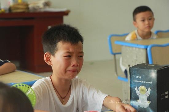 孩子们面对着讲台上泣不成声的老师,凝视着手上的奖品与信件,伤心地流下眼泪,用拥抱、写留言条等方式向队员们表达着不舍。