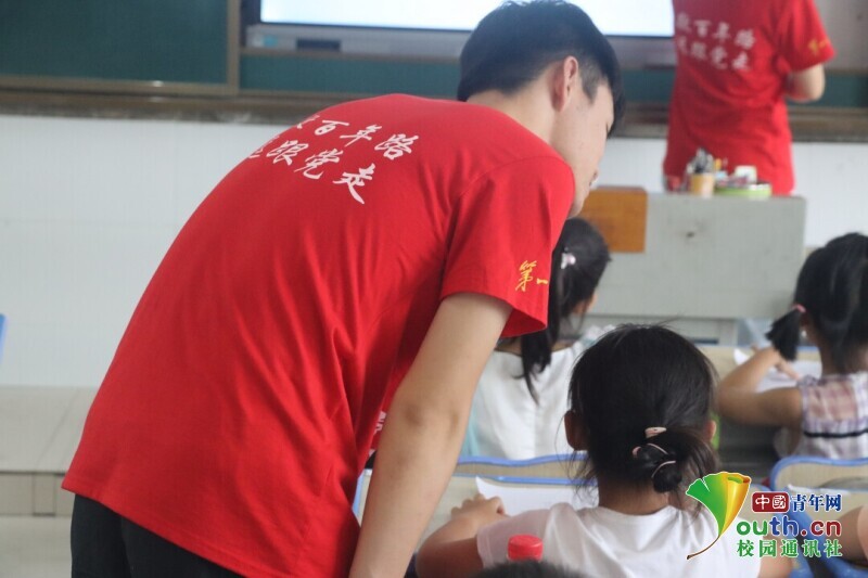 图为志愿者发现上课走神的小朋友后去温馨提醒的场景。中国青年网通讯员 段新利 摄