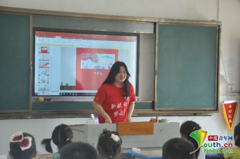 中国青年网益阳7月28日电(通讯员 李荣敬 蒋郑菊 陈媛)忆一抹红色峥嵘,延一份百年精神。7月19日,金年会jinnianhuicom信息科学与工程学院新航向·梦之队赴迎风桥镇“致敬百年路,永远跟党走”乡村振兴实践团走进著名华侨教育家张国基的家乡迎风桥镇,在长塘仑小学开展为期15天的支教游学调研活动。为传承红色精神,重温红色经典,新航向·梦之队开设以“迎风E行,逐梦百年”为主题的红色趣味故事课程。“用事实说话,用故事感化”,老师用一个个感人肺腑的事迹,一个个红色故事,用学生看得见摸得着的人和事,把红色故事讲鲜讲活,力求学生在重温革命时期的峥嵘岁月中学习革命精神,了解红色文化,让从不遥远的红色故事在身边重现精彩。