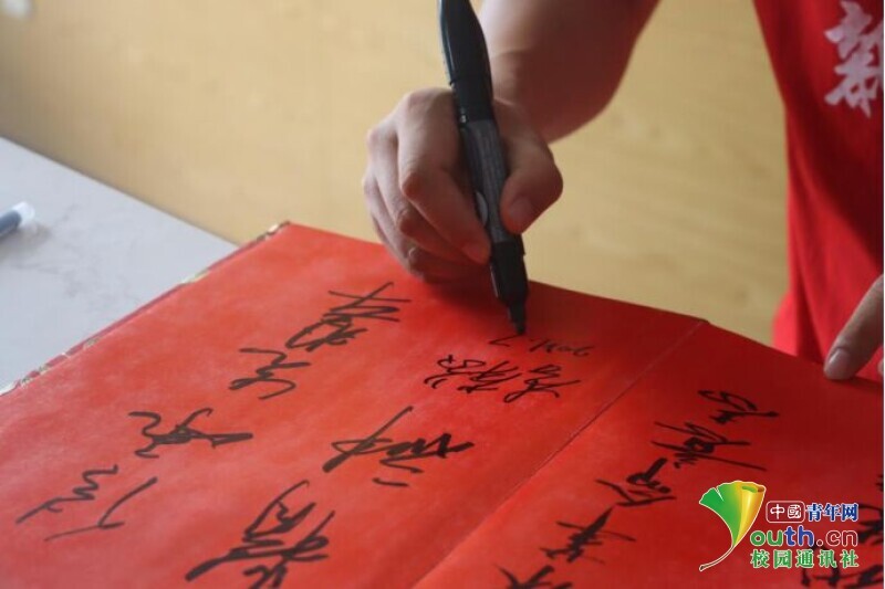 图为新航向·梦之队指导老师在张国基纪念馆纪念册上签字。中国青年网通讯员 段新利 摄