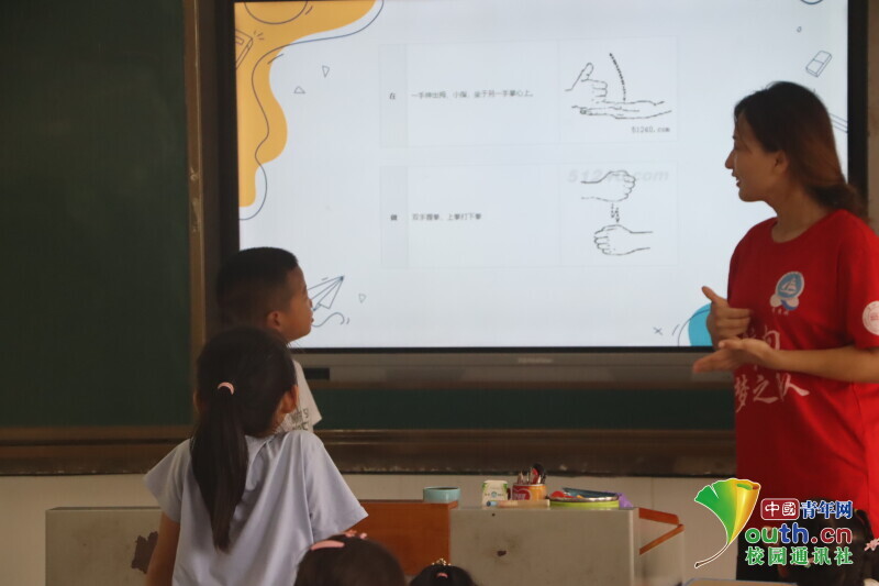 图为手语课上,学生上台给其他小朋友展示自己。中国青年网通讯员 何星逸 摄