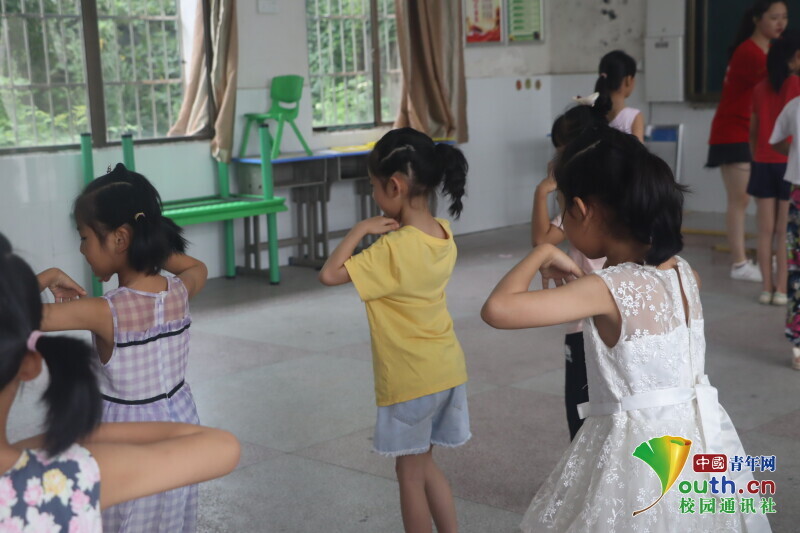 图为舞蹈课上,小朋友在没有老师带着跳的情况下,自己跟着音乐跳舞展示给老师看。中国青年网通讯员 马唯一 摄