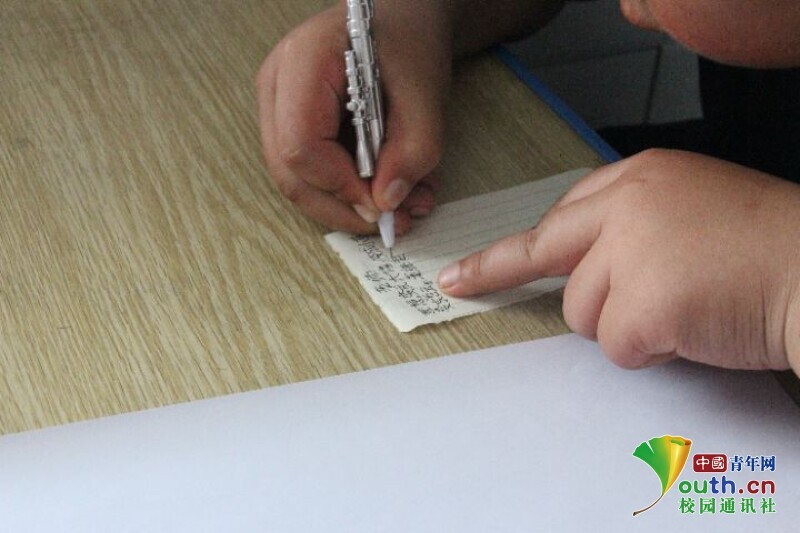 图为一位同学在诗歌创作课上以老师为题写诗。中国青年网通讯员 段新利 摄