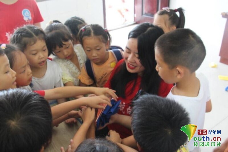 图为课后,孩子们与志愿者老师在一起开心地玩游戏。中国青年网通讯员 段新利 摄