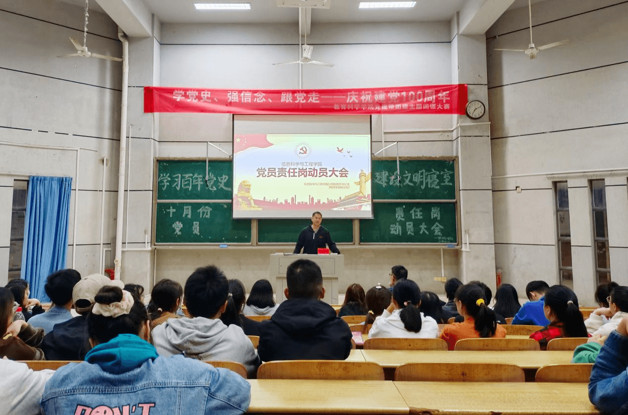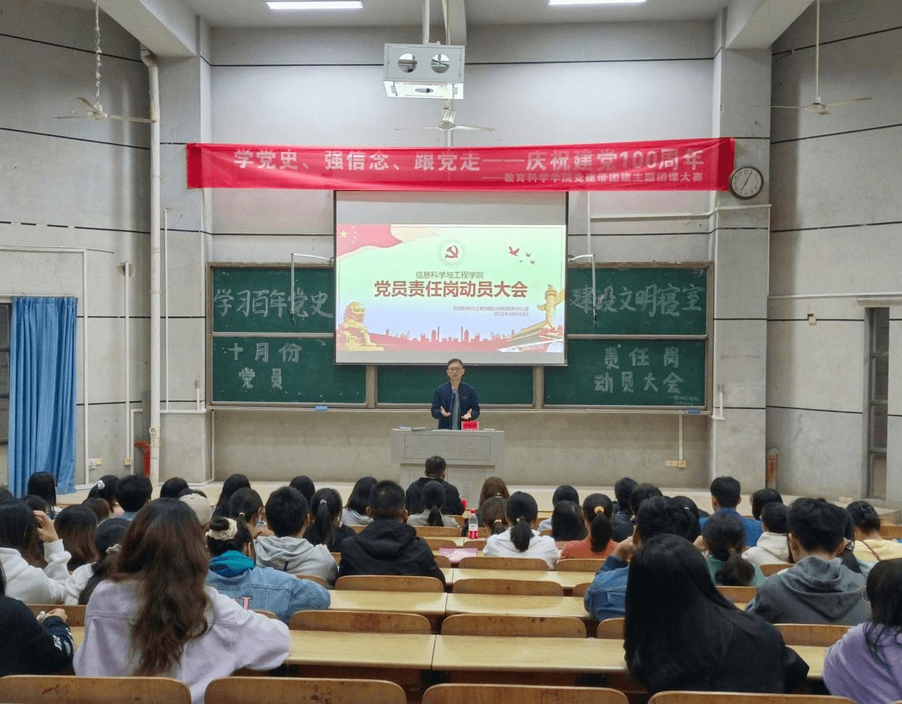 2021年10月13日晚,金年会官网于怀中南110召开十月份党员责任岗动员大会。与会人员有学工第一党支部书记关红儒、学工第二党支部书记李荣敬、18-20级责任党员和责任积极分子。大会由何星逸主持。