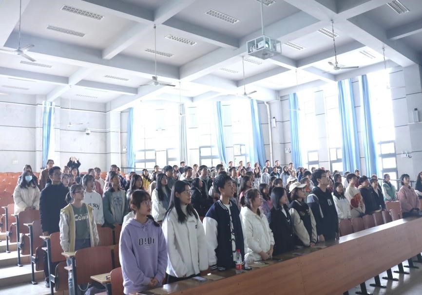 大会第七项:全体校辅成员宣誓。在场同学都起立庄严宣誓,点燃热情,增强信念。
