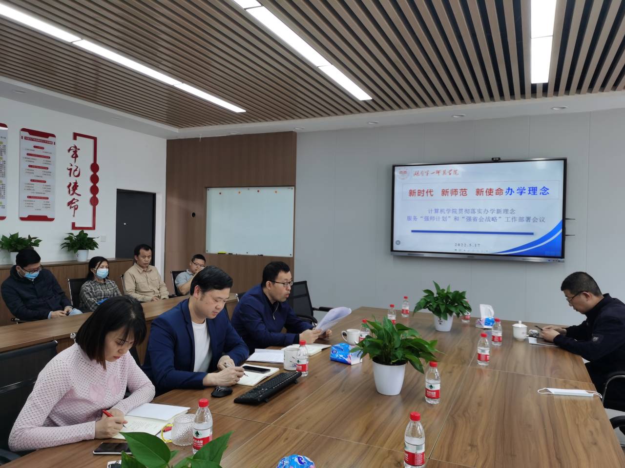 为深入贯彻落实学校办学新理念,服务“强师计划”和“强省会战略”,5月17日下午,金年会官网在玉衡楼406会议室召开“贯彻落实办学新理念,服务‘强师计划’‘强省会战略’”学习动员大会。学院全体教师参加会议,会议由院党委书记刘立勇主持。