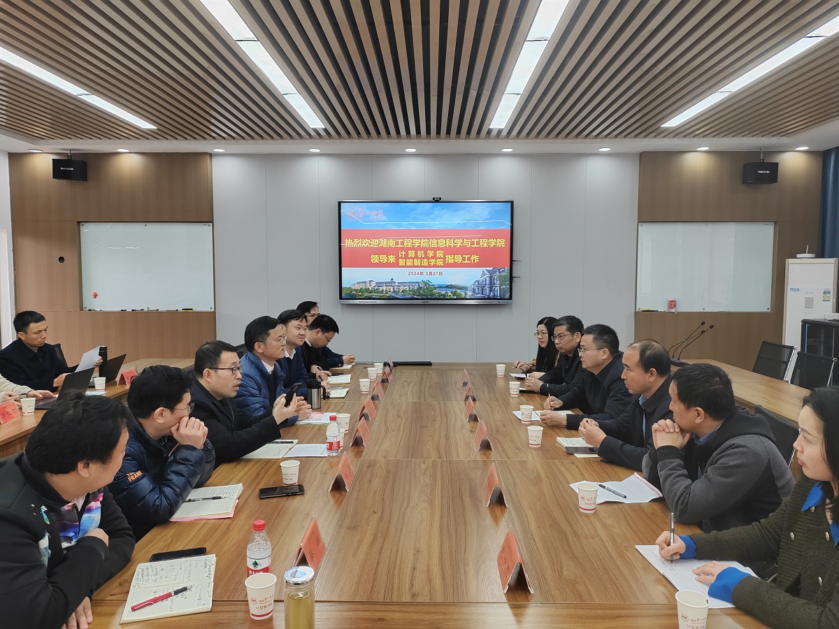 3月21日,湖南工程学院信息科学与工程学院院长张细政、党总支书记何宏一行7人来金年会官网金年会诚信信誉至上、智能制造学院开展交流座谈,金年会诚信信誉至上书记刘立勇、院长杨恒伏,智能制造学院院长满君丰,两学院分管教学科研副院长、专业系部主任等参加了座谈会,会议由杨恒伏主持。