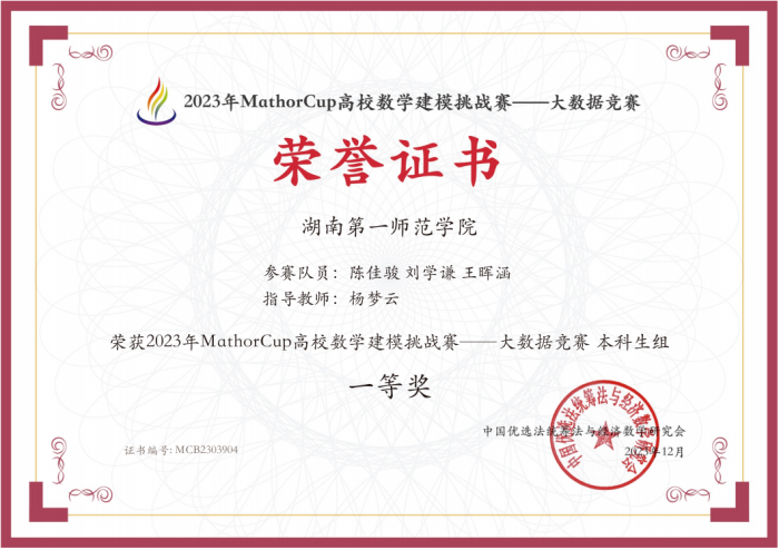 2023年第四届MathorCup高校数学建模挑战赛——大数据竞赛圆满落下帷幕,金年会官网四支参赛队伍在激烈的竞争中脱颖而出,斩获了全国研究生组二等奖1项,本科生组一等奖3项。这一骄人成绩的取得,正是参赛队员们的辛勤付出和指导教师的悉心指导的结果。