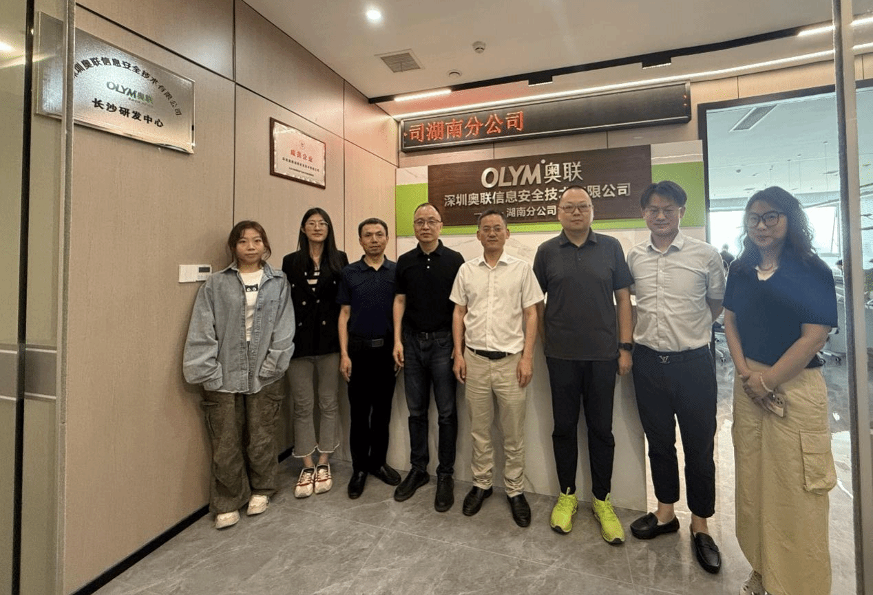 在深圳奥联湖南分公司,总经理周平陪同参观了企业展示中心。座谈会上,周平重点阐述了校企合作在商业密码人才培养、横向课题申报及师资培训等方面的重要意义,并提出合作意向。杨恒伏表示,学院期待与企业在创新人才培养和科研成果转化方面建立长期合作机制。双方围绕密码技术应用创新、产教融合等议题进行了深入探讨。