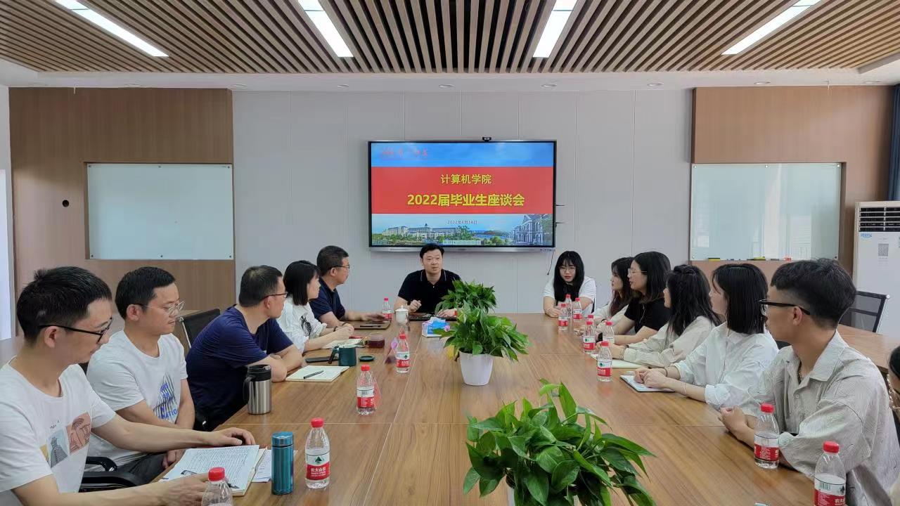 6月14日下午,金年会官网在玉衡楼406会议室召开2022届毕业生代表座谈会,院行政领导班子成员、学工办主任、毕业班辅导员及20名毕业生代表参加会议,会议由院党委副书记陈奕主持。